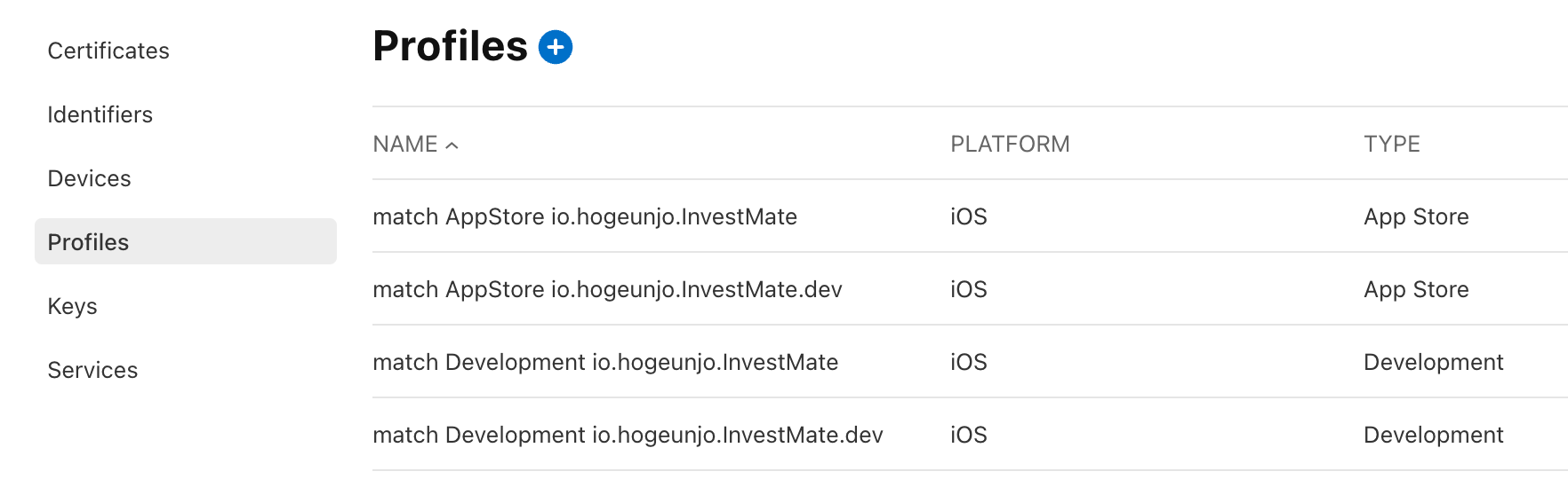GitHub와 Apple Developer 계정 양쪽에서 인증서와 프로비저닝 프로파일이 정상적으로 생성된 것을 확인할 수 있었다.