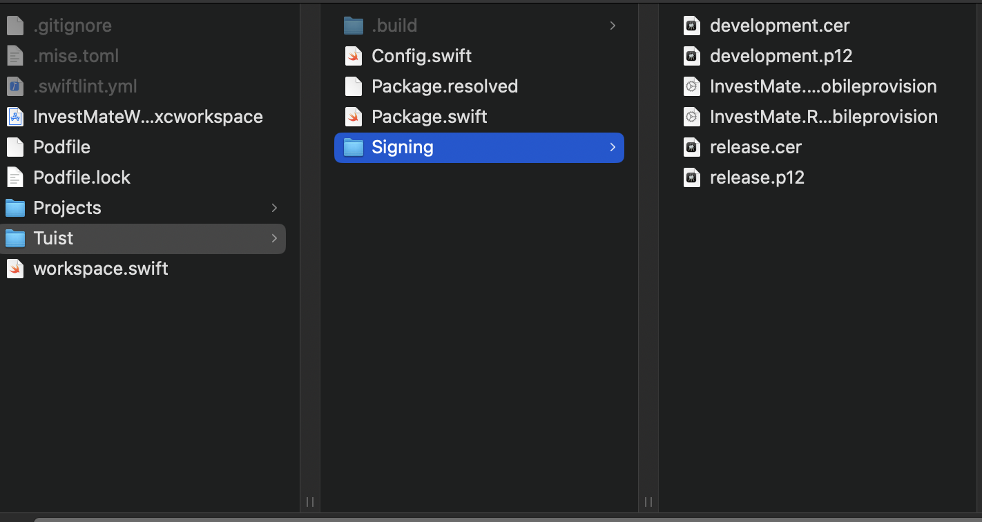 그래서 Tuist Signing을 적용하기 위해 두 개의 파일을 추출해서 정적으로 제공해줘야 한다.