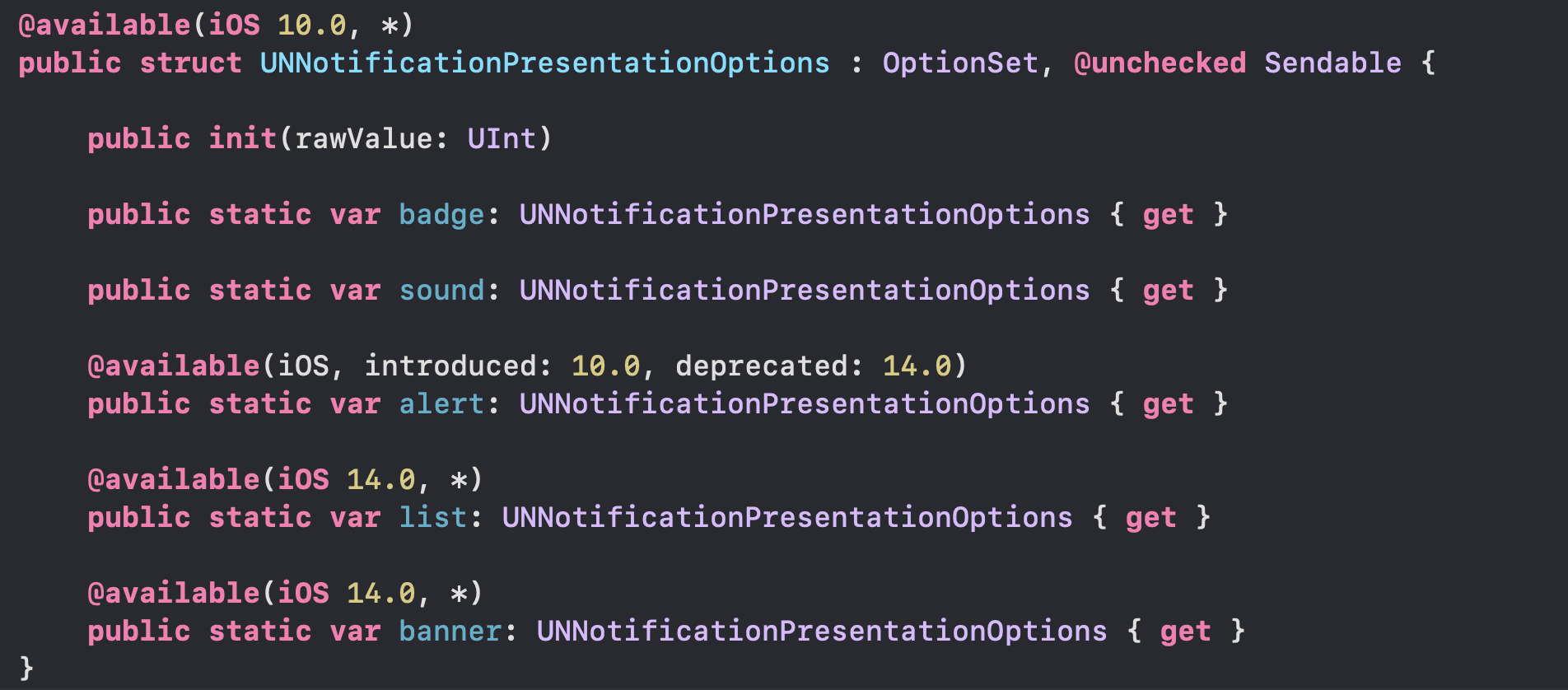func userNotificationCenter(_ center: UNUserNotificationCenter, willPresent notification: UNNotification) async -> UNNotificationPresentationOptions {