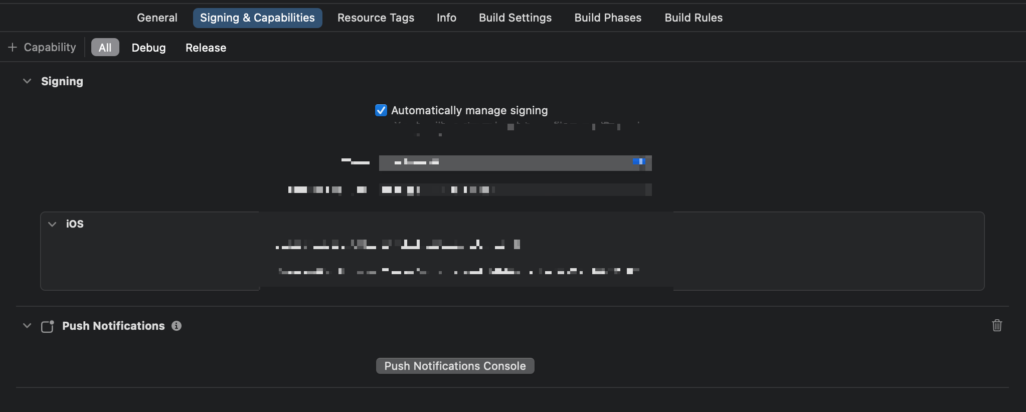 푸시 알림을 수신하려면 앱 타겟에 Push Notifications Capability를 추가한다.