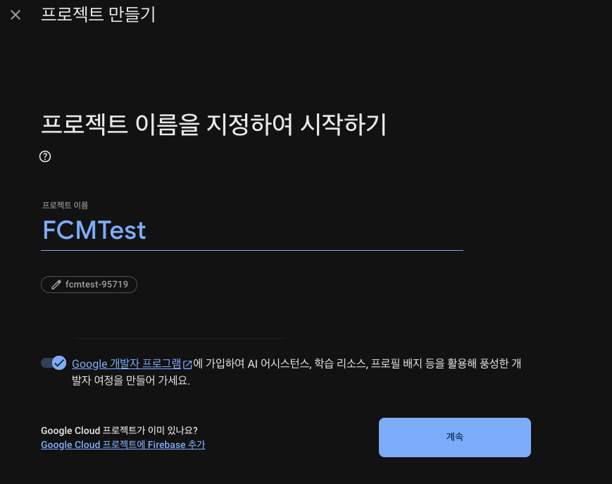 SDK설치 시, FCM이 목적이니 FirebaseMessaging을 선택하였다.