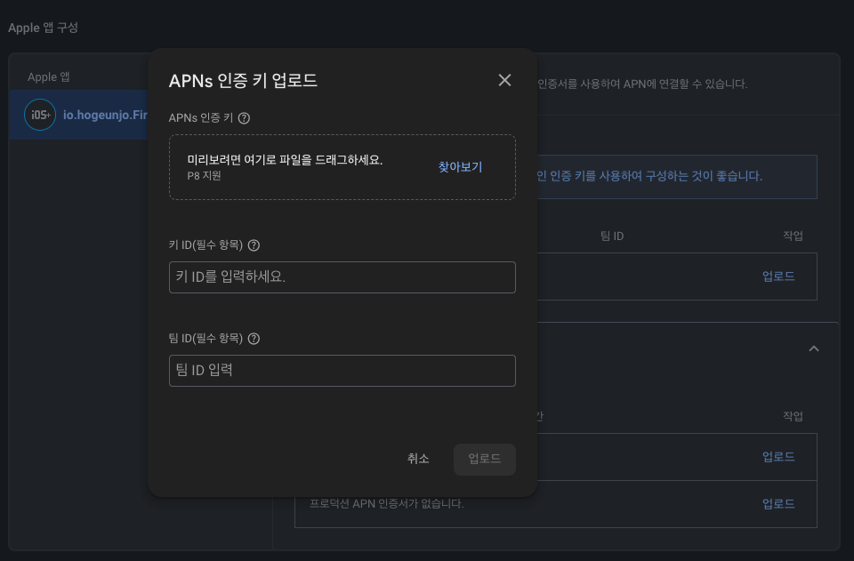 아까 다운로드한 p8파일 업로드해준다.