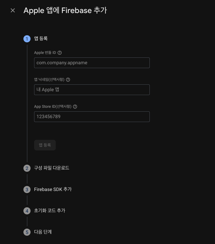 iOS 앱 등록해준다. (Bundle ID 필요함)