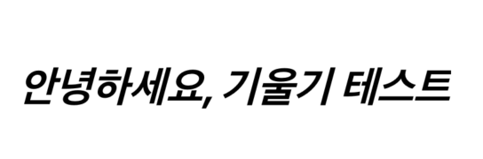 대부분 한글 폰트는 한글 글자에 대한 기울어진 글리프를 가지고 있지 않다.