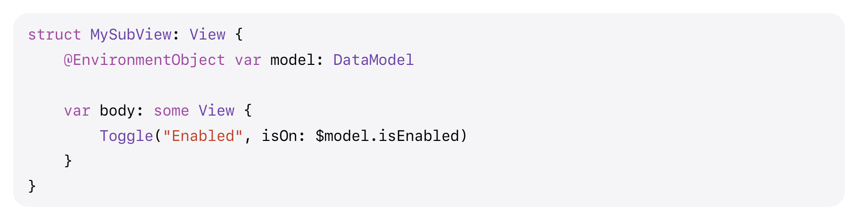 View가 ObservableObject를 직접 생성하지 않고, 외부에서 전달받아 사용하는 상황에 적합.